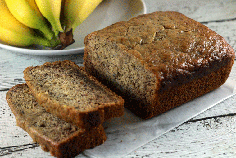 Убаво изматете ги 4-те јајца, додајте го шеќерот, претходно стопениот путер на оган и згмечените банани. Додајте ја и киселата павлака и матете додека состојките не се соединат. Малку по малку додавајте го брашното. На крај ставете го и прашакот за пециво. Печете 1 час и 10 минути на температура од 180⁰C.